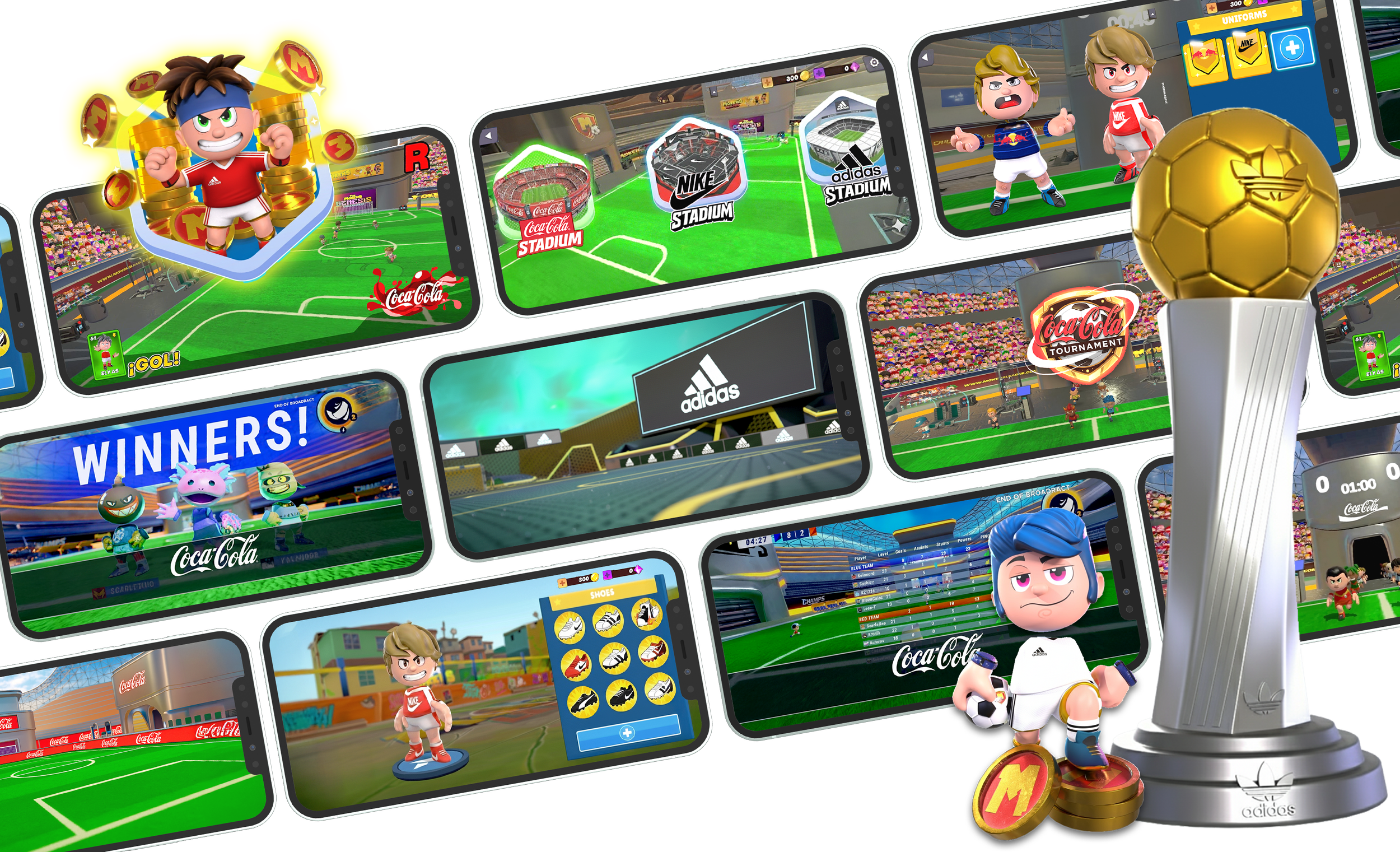Our initial offering, a real-time multiplayer soccer game, is live on Android, iOS, and PC.